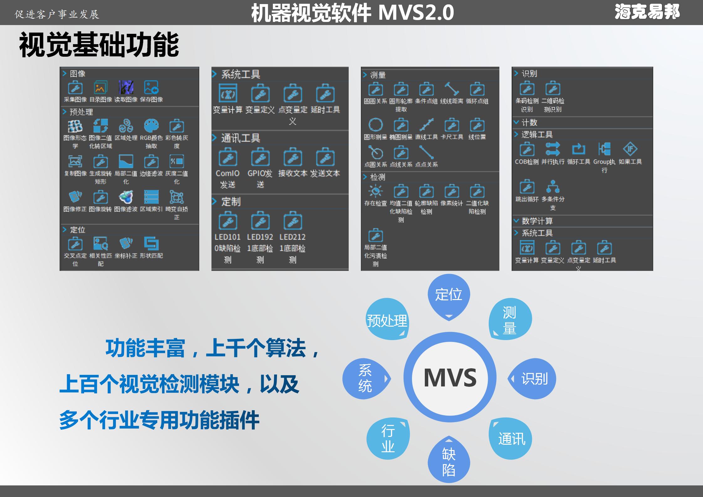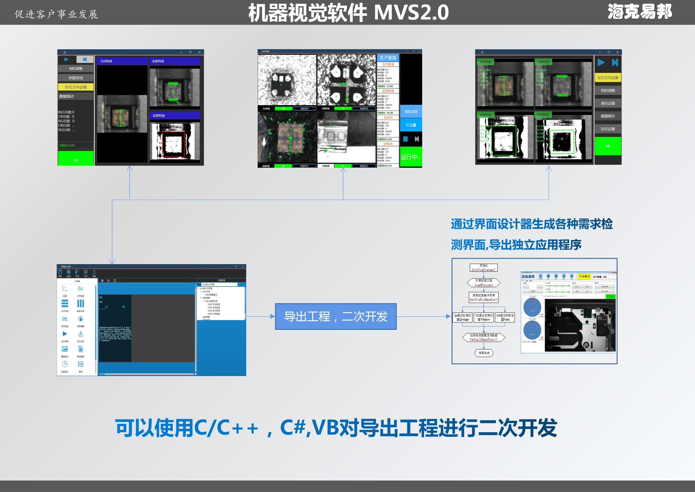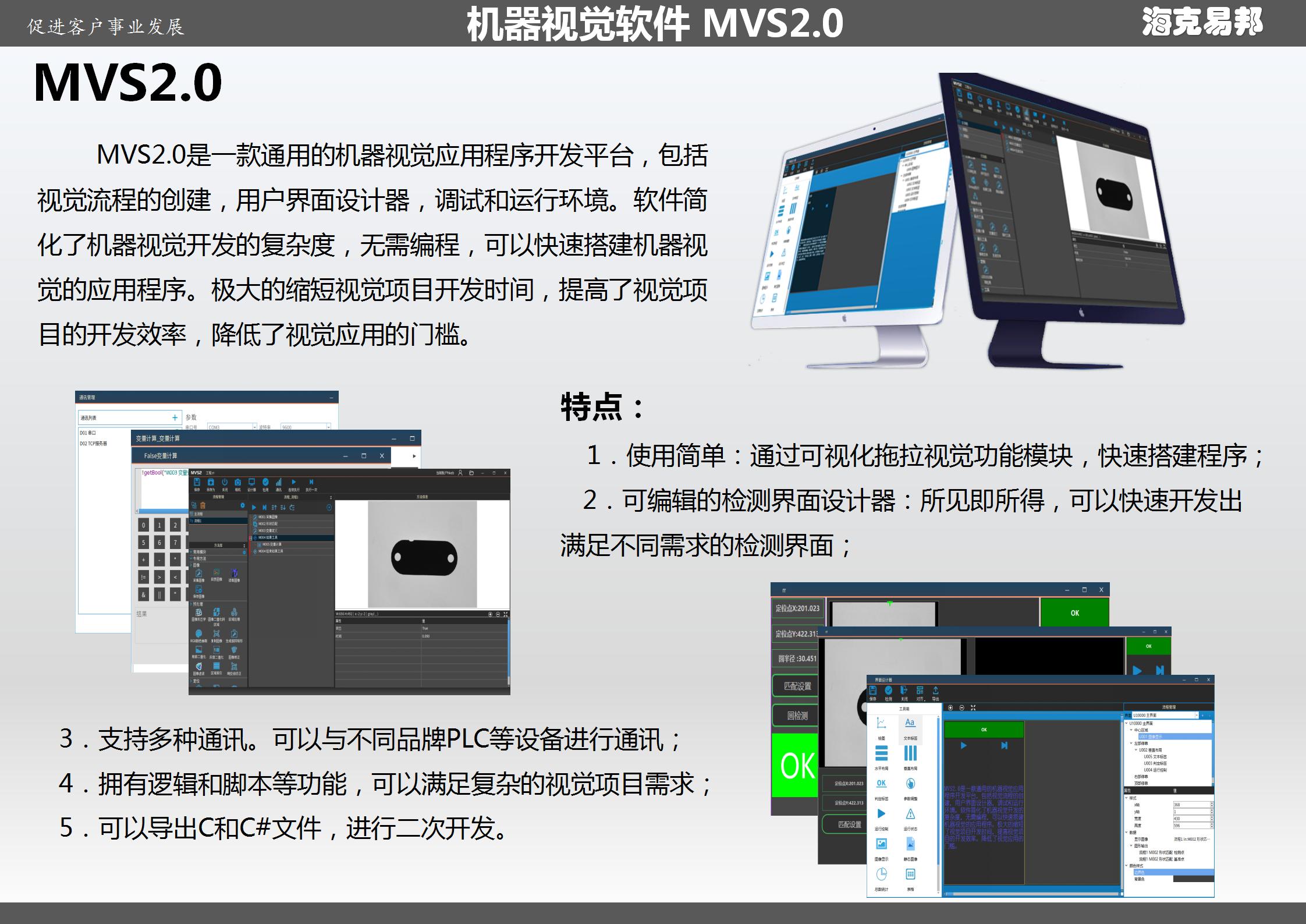 作为“国家高新技术企业”“陕西省专精特新中小企业”,海克易邦深耕机器视觉领域十余年,凭借丰富的行业项目经验和深厚的技术积淀,重磅推出通用机器视觉应用程序开发平台——MVS2.0,彻底打破行业壁垒,让机器视觉开发变得简单、高效、可落地,赋能各行各业实现智能化升级。