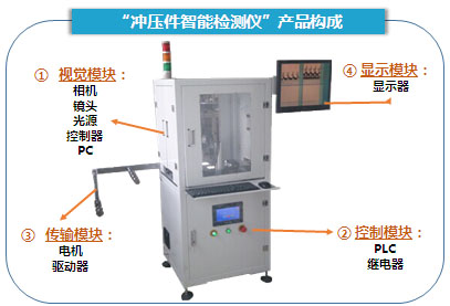 冲压件检测系统主要是冲压件的几何尺寸、端子缺少、漏冲、断裂等异常状况进行检测,可提示报警或者控制机器停机。对不符合要求的冲压件检测后可输出控制信号,剔除不合格品。